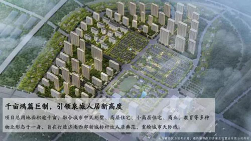 濟南楊柳春風由濟南城市建設集團和藍城集團聯袂打造,項目位于西客站高鐵圍合北側,占地面積1300畝,建筑面積182萬平方米,規劃建設中式宅院、高層住宅、商業、教育等多種物業形態。