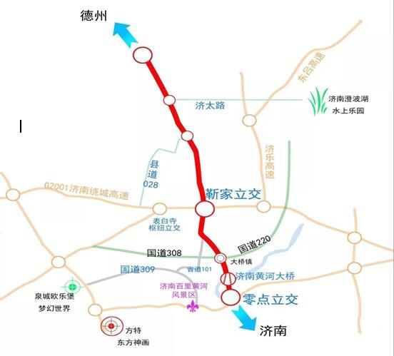 沿線居民和企業通過靳家互通立交往東直達遙墻國際機場、連接濟樂和濟東高速,往西連接青銀直通京福、濟聊高速,極大地方便了黃河北地區市民出行。