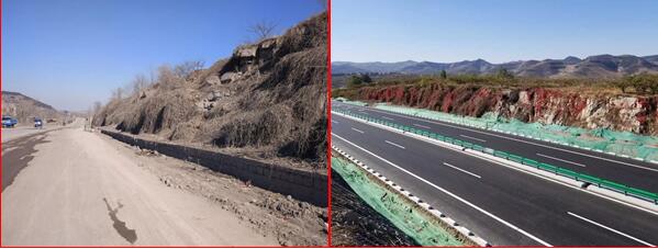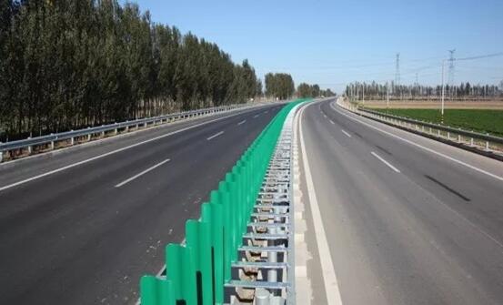 工程中央分隔帶安裝新型防眩網,顏色亮麗、美觀大方,既隔離上下行車道,又防護夜間行駛車輛燈光,達到防眩和隔離的目的,為旅游大道增添了一道亮麗的風景線。