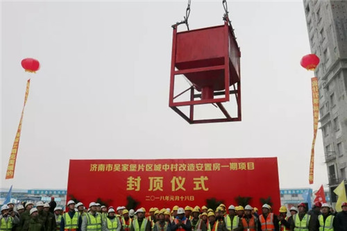 1月18日上午,備受社會關(guān)注的濟(jì)南市第一個多村整合改造城中村項(xiàng)目——吳家堡片區(qū)城中村改造安置房一期主體結(jié)構(gòu)順利封頂。
