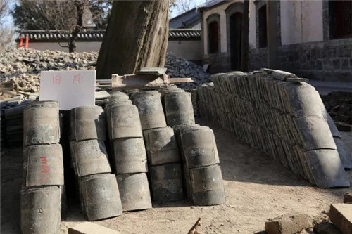 目前,所有古建的勘查檢修工作已經(jīng)完成,年久失修的房頂苫背、望板等已全被撤下,色澤與功能都已陳舊建筑油漆也被逐層敲除,臨時(shí)撤下的古磚古瓦、飛檐檁條等都被整齊編號(hào)入庫(kù),以作后用。