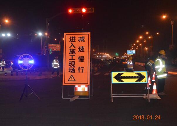 當(dāng)時氣溫在零下10℃左右,施工人員、材料、機(jī)械全部準(zhǔn)備完畢,現(xiàn)場參與施工人員達(dá)200余人、各類設(shè)備20余臺。截止到次日凌晨4點(diǎn),東營路至淄博路段施工區(qū)域已按照業(yè)主要求封閉完成并正式開始施工。