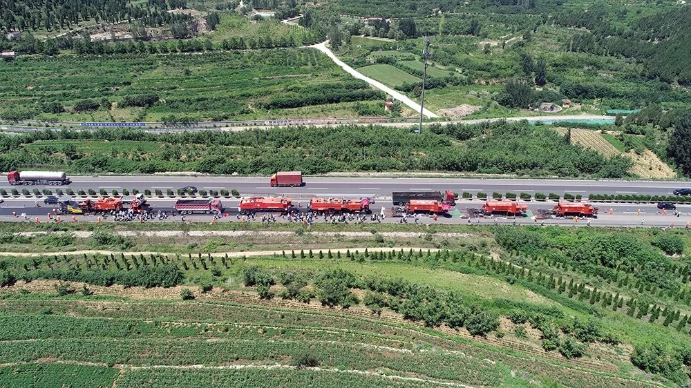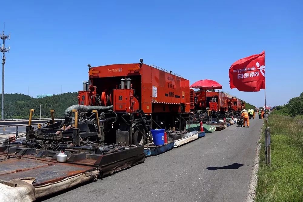 由于工藝和設備的限制,原來高速公路養護施工時必須全封閉交通。而使用就地熱再生技術施工時,各設備前后相連、連續動態施工,只占用一個車道,不用封閉其他車道交通,大大提高了施工期間高速公路的通行能力。