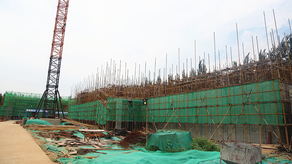 項目所有建筑中,最具標志性的當屬城門樓,同時,這也是項目內工程量最大、工期最長的單體建筑。據現場負責人介紹,僅城門樓施工使用的鋼管就已達20萬米,占整個項目鋼管消耗量的近一半,從基礎施工到主體完工,需要耗時近4個月。