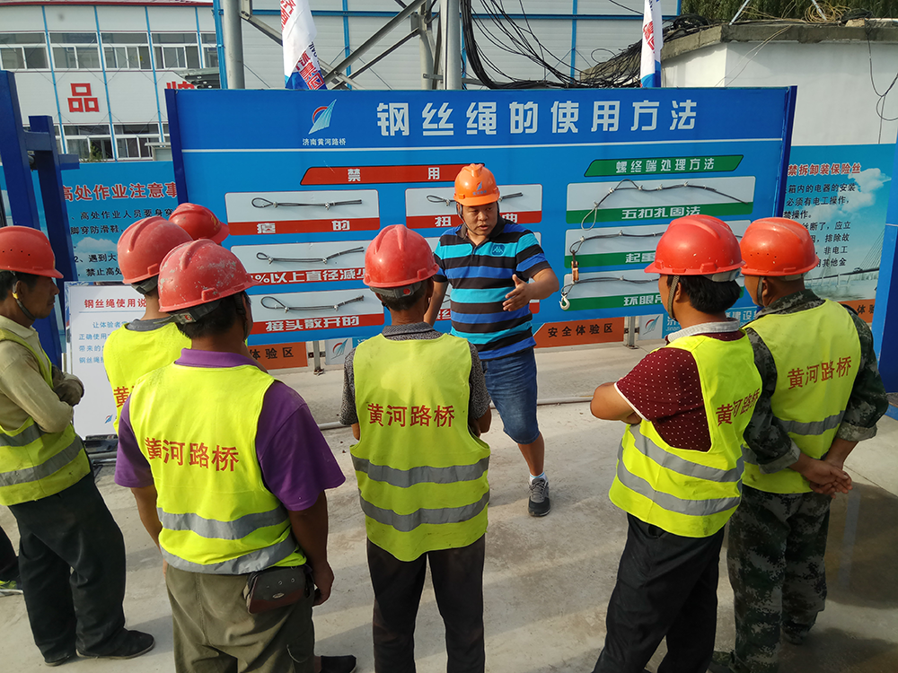 此外,為提高安全意識(shí),黃河路橋還特別在項(xiàng)目現(xiàn)場(chǎng)打造了一處安全教育培訓(xùn)體驗(yàn)館,通過(guò)洞口墜落、安全帽撞擊、現(xiàn)場(chǎng)急救、墻體傾倒等多個(gè)體驗(yàn)項(xiàng)目,基本覆蓋現(xiàn)場(chǎng)常見(jiàn)的大部分安全隱患。通過(guò)對(duì)各項(xiàng)危險(xiǎn)源和模擬事故場(chǎng)景的切身體驗(yàn),讓施工人員增強(qiáng)自我保護(hù)意識(shí),接受較為全面的安全知識(shí)培訓(xùn),學(xué)習(xí)并掌握正確的安全防護(hù)用品使用方法和有效的自救方法,避免事故發(fā)生。