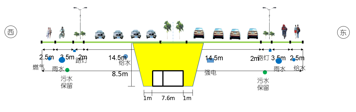 竣工后的鳳岐路地上擁有雙向八車道機(jī)動(dòng)車道以及非機(jī)動(dòng)車道和人行道,地下?lián)碛薪∪木C合管線,通行能力和通行質(zhì)量得到質(zhì)的提升。管線施工以綜合管廊為主線,兩側(cè)管線及慢行一體同步施工。