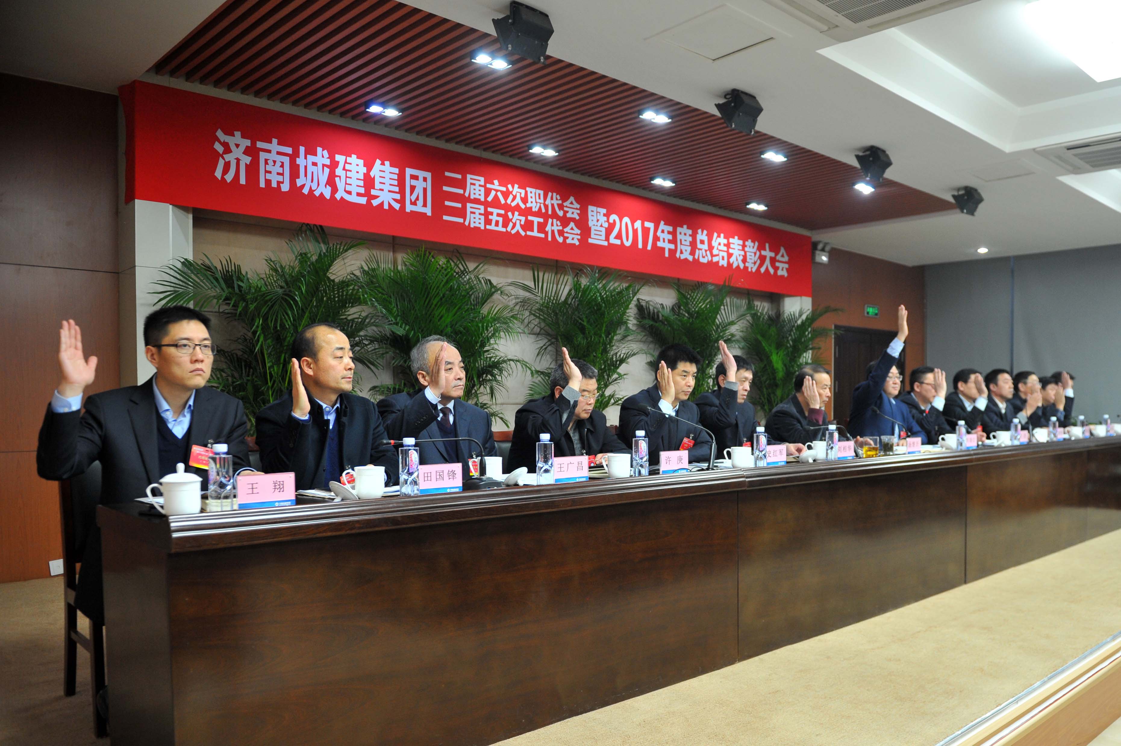 濟(jì)南城建集團(tuán)二屆六次職代會二屆五次工代會暨2017年度總結(jié)表彰大會于2018年2月2日在四樓多功能廳隆重召開。集團(tuán)領(lǐng)導(dǎo)班子成員;集團(tuán)職工代表、工會會員代表;中層干部、黨員、團(tuán)員、新員工代表;2017年度獲得表彰的先進(jìn)單位和先進(jìn)個人共200余人參加會議。大會由集團(tuán)黨委副書記、總經(jīng)理牟曉巖主持。