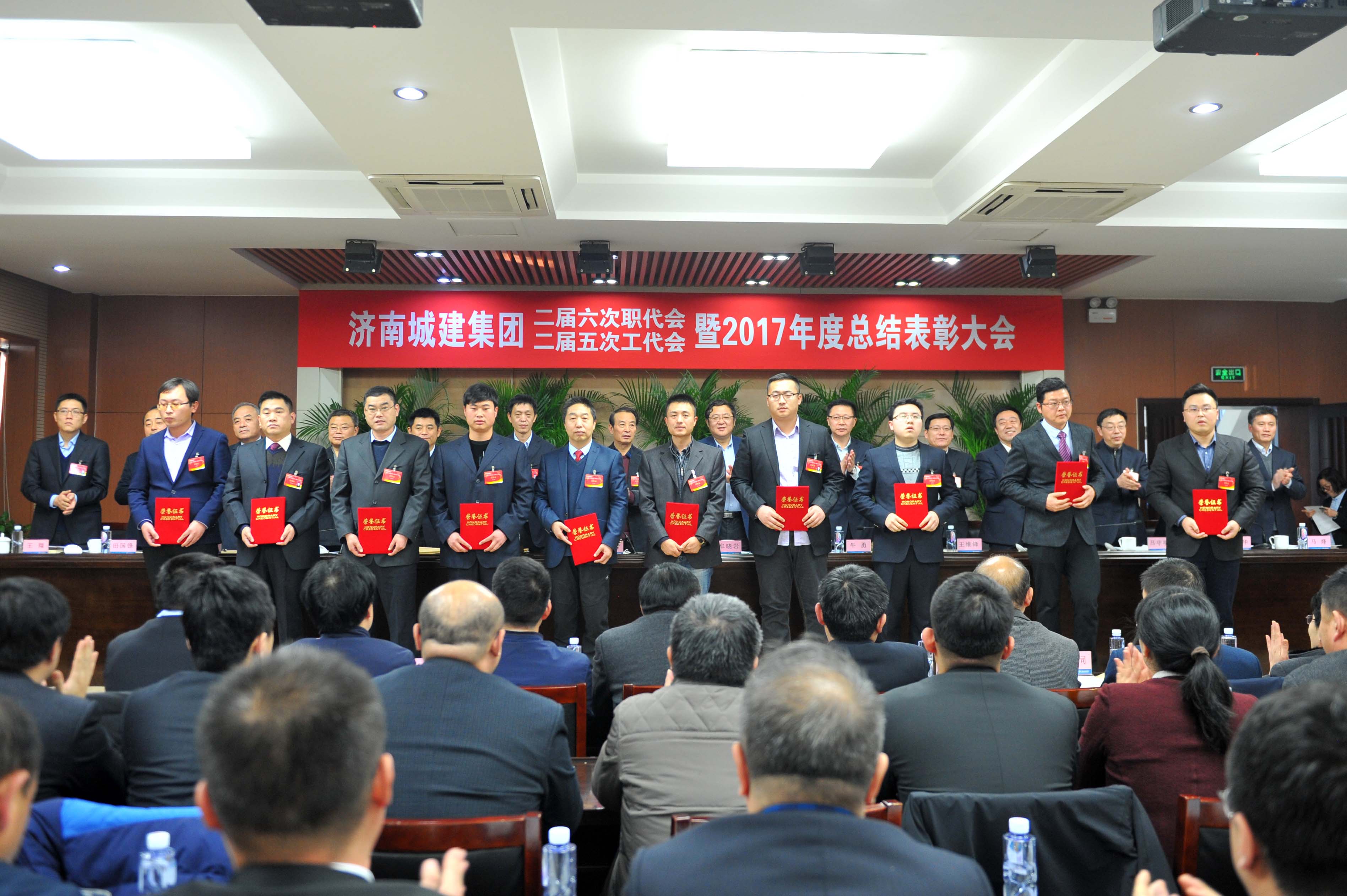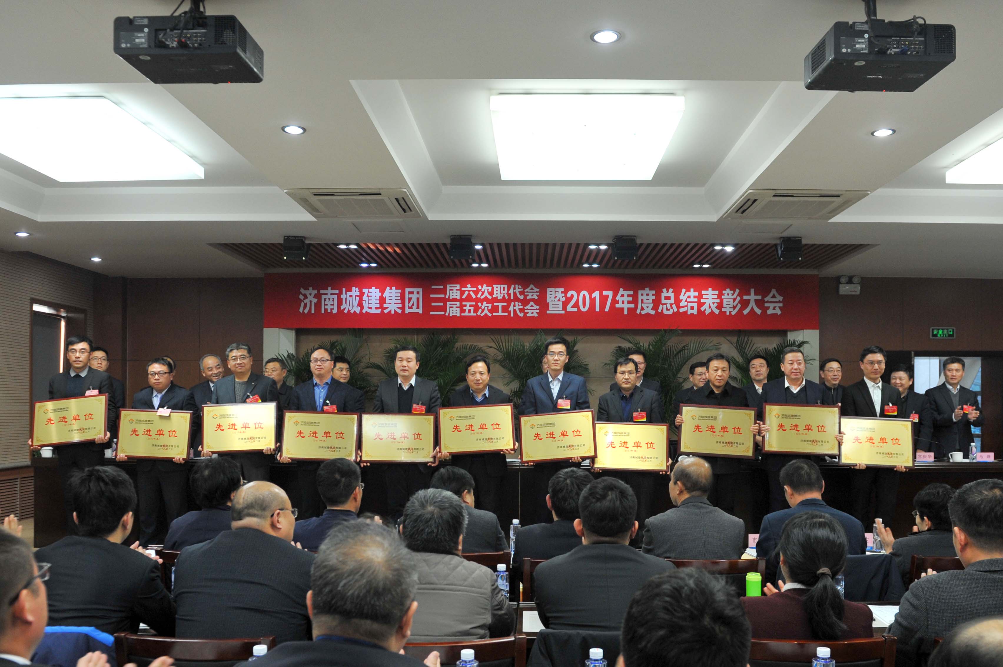 在2017年度總結(jié)表彰大會上,宣讀了集團(tuán)黨委《關(guān)于表彰2017年度先進(jìn)基層黨團(tuán)組織和先進(jìn)個人的決定》、集團(tuán)《關(guān)于表彰2017年度先進(jìn)單位、先進(jìn)集體和先進(jìn)個人的決定》及集團(tuán)工會《關(guān)于表彰2017年度先進(jìn)分會和先進(jìn)工會小組及工會積極分子的決定》。2017年度先進(jìn)單位、集體及個人代表上臺領(lǐng)取了獎牌和榮譽(yù)證書。會議提出,各單位要以先進(jìn)典型為榜樣,充分發(fā)揚(yáng)“拼搏、創(chuàng)新、團(tuán)隊、奉獻(xiàn)”的城建鐵軍精神,凝心聚力,開拓創(chuàng)新,為實現(xiàn)集團(tuán)新的跨越發(fā)展做出更大貢獻(xiàn)。