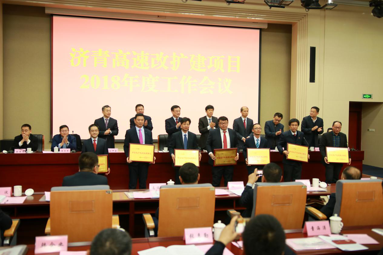 2018年3月16日,濟南至青島高速公路改擴建項目召開了2018年度工作會議,會上表彰了2017年度表現突出的各參建單位,濟南金諾公路工程監理有限公司第五駐地辦被評為“2017年度優秀監理單位”、“2017年度安全生產先進監理單位”、“2017年度超額完成獎單位”榮譽稱號,并獲得現金獎勵38萬元。