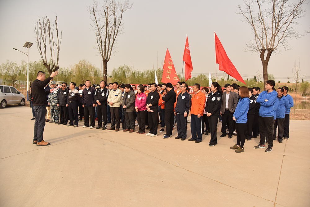 植樹現場大家繁忙有序、干勁十足,在技術人員專業指導下,一部分同志穿戴各自的工裝、迷彩服,揮舞著自己的隊旗,佩戴著“造綠濟南,志愿奉獻”的LOGO徽標,鏟土挖坑、扶苗栽樹;還有一部分同志對去年栽種的100多棵北美海棠樹進行培土、澆水、剪枝,并對周邊的垃圾進行拾撿清理為內容的“回頭看”勞動。在大家共同努力下,經過一個半小時的忙碌。共栽植近200余棵木槿樹。