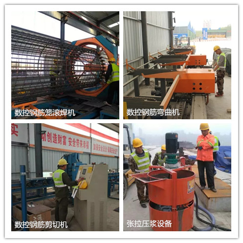 數控鋼筋籠滾焊機、彎曲機、剪切線、張拉壓漿設備等先進設備的應用,使預制箱梁生產達到了規?;⒐S化的質量要求,發揮了科技創新的引領作用。