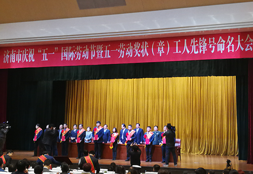 2018年4月23日,濟南市總工會在龍奧大廈召開濟南市慶祝“五一”國際勞動節暨五一勞動獎狀(章)工人先鋒號命名大會。大會表彰了一批工作突出、貢獻卓著的先進集體和先進個人。