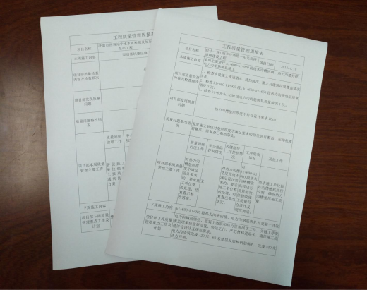 項目部接收質量管理交底,并承諾貫徹執行。現各項目已按交底要求開展相關工作,并開始上報質量管理工作周報等報表,公司可及時掌握各項目質量管理動態,有針對性的調度各項目部質量管理工作,有效提高了公司質量管理監管的力度。