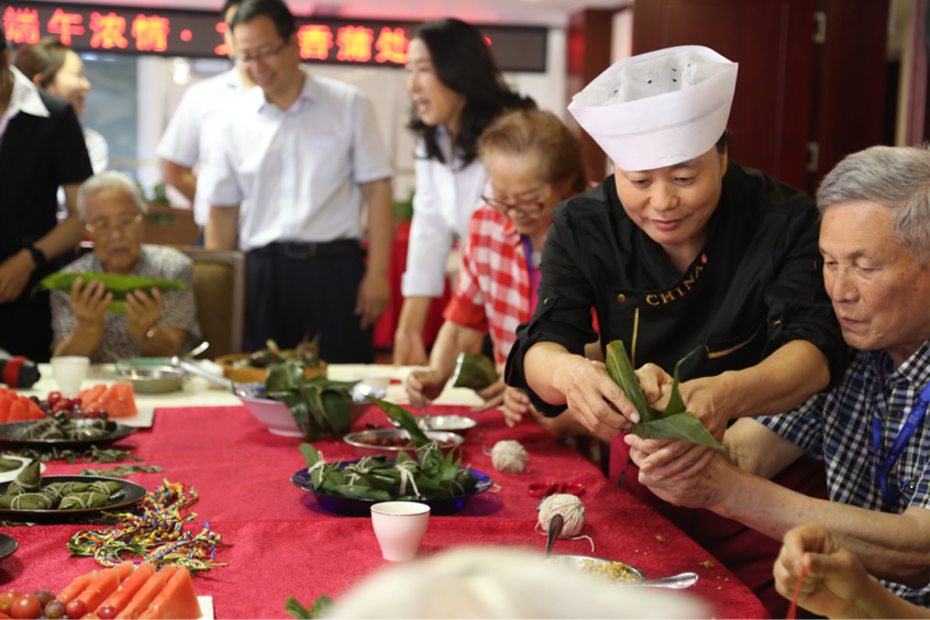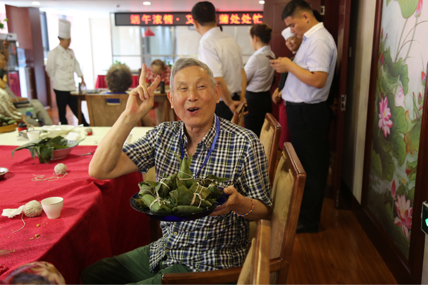 五月五,是端陽。門插艾,香滿堂;吃粽子,灑白糖;龍舟下水喜洋洋。6月18日,山東濟南養老服務中心的老人們迎來了入住以來的第一個端午節,服務人員們也忙得不亦樂乎。