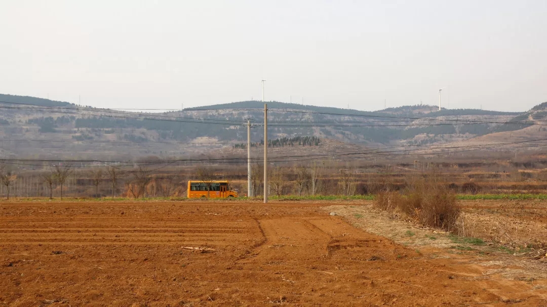 16:30一輛校車從山間道路上駛過。王棟棟要趕回鎮里,去為村里的貧困戶領取幫扶用品。