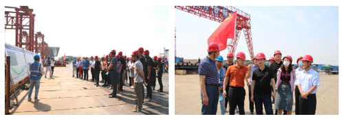 在鳳凰黃河大橋,項目負責人對鋼塔、鋼箱梁頂推和跨堤引橋施工以及安全、質(zhì)量、進度、環(huán)保和疫情防控等情況進行了介紹,支部成員進行了現(xiàn)場參觀。