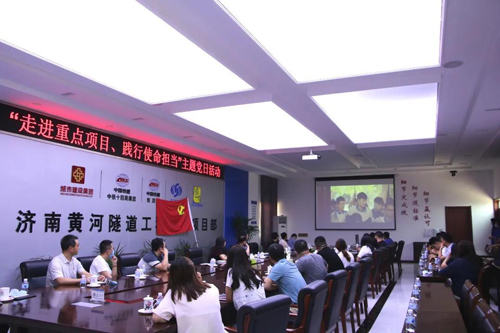 在濟南黃河隧道,支部成員參觀了濟南黃河隧道智慧工程指揮中心及大盾構施工現(xiàn)場,了解了黃河隧道設計原理和掘進技術,感受了現(xiàn)代化、信息化、智能化建設現(xiàn)場的魅力和震撼。