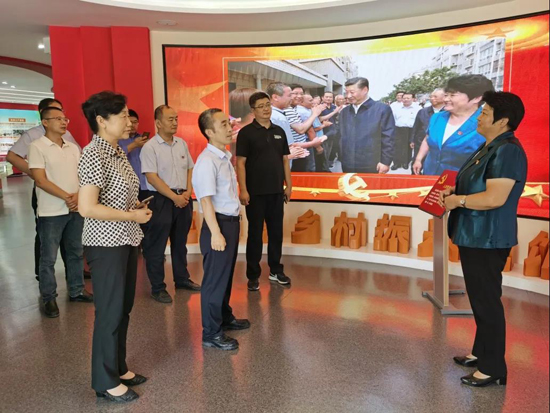 在三澗溪村,工作人員帶領(lǐng)大家重走習(xí)近平總書記的考察足跡。在村委會黨群服務(wù)中心,深入了解了三澗溪村的成長史、黨組織的發(fā)展歷程、黨組織建設(shè)經(jīng)驗(yàn)和先進(jìn)做法,以及“四鄰聯(lián)動”等為民服務(wù)體系。在鄉(xiāng)村振興主題展館,工作人員為大家講解了習(xí)近平總書記親臨三澗溪村視察指導(dǎo)的有關(guān)情形,并結(jié)合實(shí)物、圖片、視頻、展板等載體講述了三澗溪黨委不忘初心,牢記使命,擔(dān)當(dāng)作為,團(tuán)結(jié)帶領(lǐng)村民脫貧致富的奮斗歷程。期間,工作組與三澗溪村黨委書記高淑貞就黨建引領(lǐng)、鄉(xiāng)村振興等方面進(jìn)行了暢談交流,參觀結(jié)束,全體人員在黨旗前重溫了入黨誓詞。