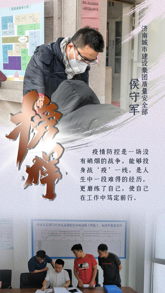 新型冠狀病毒肺炎疫情發生以來,濟南城市建設集團認真貫徹落實中央、省、市關于疫情防控和復工復產的決策部署,上下一心、眾志成城,全體干部職工恪盡職守、扎根一線,全員全力投入到疫情防控阻擊戰中。期間,涌現出了眾多先進典型和感人故事,用實際行動詮釋了建設集團人的精神風貌和責任擔當。我們在集團宣傳平臺《榜樣》欄目,推出系列人物報道,挖掘宣傳一線典型,提振士氣、凝聚力量,激勵我們繼續前行,堅決打贏疫情防控的人民戰爭、總體戰、阻擊戰。