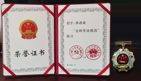 2017年,陳德國獲得濟南市勞動模范稱號,2018年獲得山東省勞動模范稱號,2020年11月24日,陳德國在北京人民大會堂接受表彰,獲得全國勞動模范稱號。對于榮譽,陳德國說:“我就是一個地地道道的農民,從小對土地有很深的感情,就想踏踏實實種好地,干好本職工作,榮譽是大家共同努力的結果,對我個人是一種動力,我想能借助集團平臺,為食品安全和綠色農業發展做點力所能及的事情。”
