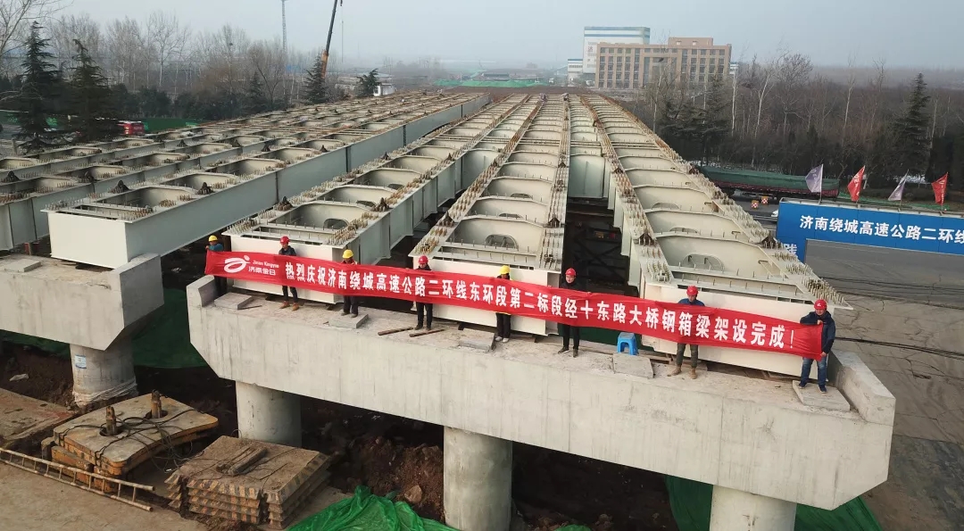 1月18日,濟南繞城高速公路二環(huán)線東環(huán)段二標段(濟南“大東環(huán)”)互通主線橋跨經(jīng)十路鋼箱梁順利合攏。至此,項目跨越經(jīng)十東路大橋鋼箱梁架設(shè)工作全部完成,為實現(xiàn)年底通車的目標打下了良好基礎(chǔ)。