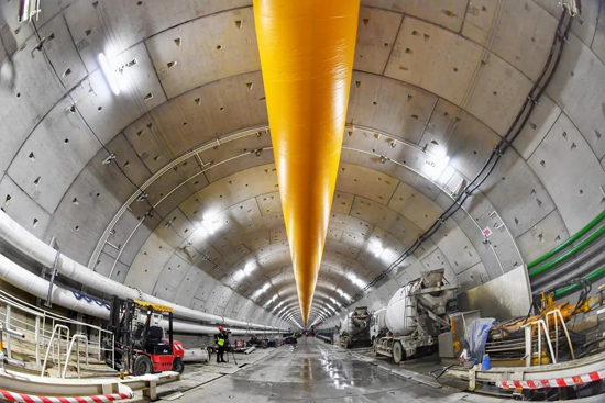 從2019年12月東線盾構正式掘進以來,施工單位充分發揮在水下大盾構施工領域核心技術優勢,在院士專家團隊指導下,依托大數據、BIM和物聯網技術,對隧道遇到的復雜難題進行了專項科研攻關。建設了國內第一條15米以上管片智能化自動化生產線,研發了管片抹面機器人、管片3D智能檢測系統,實現了管片預制全過程信息化和可追溯性查詢。11個月時間,掘通了東線隧道。西線隧道正按照計劃順利掘進,預計2021年春節前可望貫通。