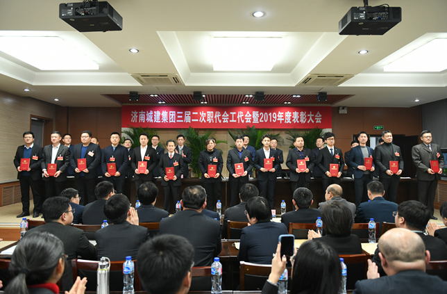 1月16日,城建集團(tuán)三屆二次職代會工代會暨2019年度總結(jié)表彰大會在四樓多功能廳順利召開。城建集團(tuán)黨委書記、董事長湯繼沂,黨委副書記、總經(jīng)理牟曉巖等領(lǐng)導(dǎo)班子成員、職工代表、受表彰先進(jìn)單位和先進(jìn)個(gè)人代表等共223人參加會議。