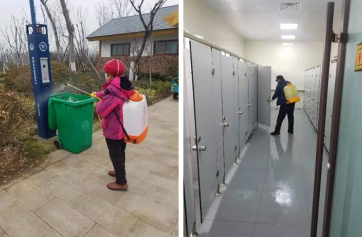 各標段均安排專人做為防疫專員,對所有進入建筑工地的人員進行體溫檢測,逐一記錄并做好統計,嚴控各標段務工人員返崗,對景區衛生間、垃圾箱、座椅等易污染設施嚴格實行不低于每日四次的噴灑消殺藥劑措施。