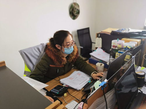 11點45分,金曰公司長清220項目部計劃合同部的張強還在緊張的準備新一期計量報表。國道220長清陳莊項目是濟南市國省道重點改擴建項目,工期緊,為保工程如期完工,她正月初六便從河北唐山返回濟南家中隔離辦公。