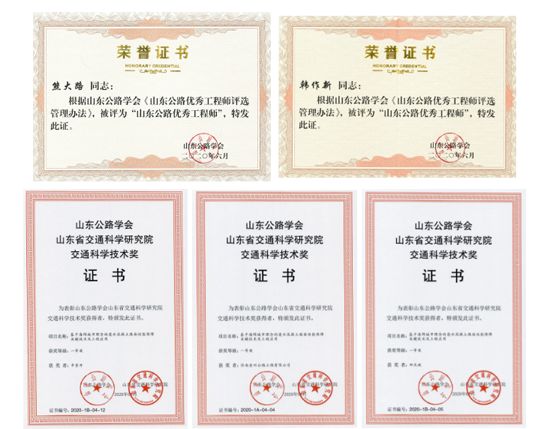 金曰公司總經理熊大路、金諾公司總經理韓作新榮獲第四屆“山東公路優秀工程師”榮譽稱號。金曰公司《基于海綿城市理念的透水混凝土路面性能保障關鍵技術及工程應用》科研成果榮獲山東公路學會山東省交科院交通科學技術一等獎,金宇公司《年久鋼質護欄立柱埋深無損檢測精度控制與現場應用研究》科研成果榮獲山東公路學會山東省交科院交通科學技術三等獎。