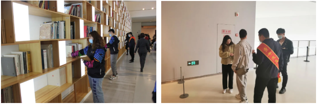 活動(dòng)現(xiàn)場(chǎng),志愿者們認(rèn)真聽取了美術(shù)館負(fù)責(zé)人對(duì)“雙年展”布展情況的介紹,了解志愿服務(wù)內(nèi)容。經(jīng)過分工,大家迅速到達(dá)自己的指定崗位,維持場(chǎng)館內(nèi)外排隊(duì)觀眾秩序,熱心引導(dǎo)、幫助觀眾尋找展廳,并協(xié)助工作人員整理擺放設(shè)施,提醒觀眾按照美術(shù)館要求文明參觀等,獲得了館內(nèi)工作人員的一致好評(píng)。