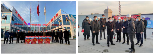 濱河天城建設開發有限公司開展安全檢查及走訪慰問活動,活動中相關人員分別走訪慰問了北湖片區東B、東C、核心南地塊安置房項目一線建設者,為他們送去新春祝福和春節慰問品。詳細了解他們生活生產情況及存在困難,聽取他們的意見和心聲,同他們拉家常、問冷暖,讓他們過上一個暖心暖意的幸福年。