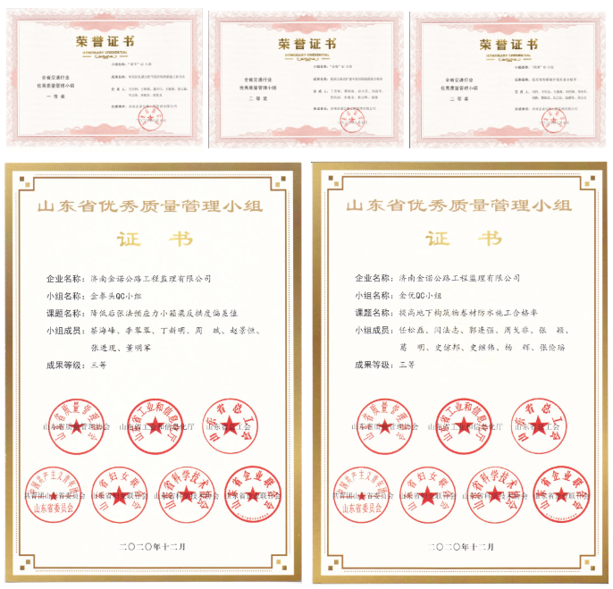 質(zhì)量是企業(yè)的生命,工程質(zhì)量是工程建設(shè)的核心。金諾公司積極組織科技工作者參加全面質(zhì)量管理培訓(xùn)、鼓勵科技工作者依托監(jiān)理服務(wù)項目開展全面質(zhì)量管理活動。2020年度金諾公司組建了10個QC小組,取得QC成果11篇。其中4個QC小組(成果)獲地市級獎項,4個QC小組(成果)獲省部級獎項。