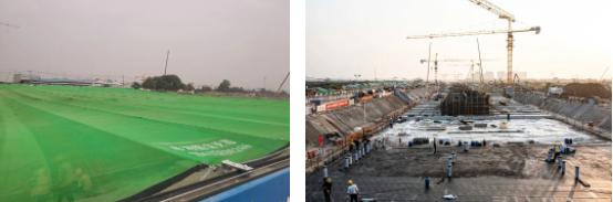 “之前干的高速公路項目比較多,荒郊野外對環(huán)保上要求相對來說要松一些,后來隨著環(huán)保要求的逐漸提高,尤其是現(xiàn)在的黃河大道項目,要全線覆蓋密布網(wǎng),一開始有些抵觸,覺得都是動土的活,哪可能一點泥土也不見,隨著施工過程的進展,思想上也就慢慢轉(zhuǎn)變過來了了,覺得確實應該這么做”,辛崇升說。