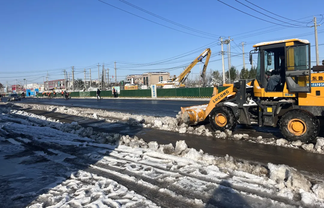 在寒潮期間,施工現場項目緊急出動全部施工機械,用半天時間就完成清雪工作。同時,項目發動施工人員三班輪流作業,通過開展勞動競賽,調動施工單位的積極性,高峰期施工人數達近千人,上百臺機械同時開動,各工種作業人員井然有序,終于如期完成階段性通車節點。