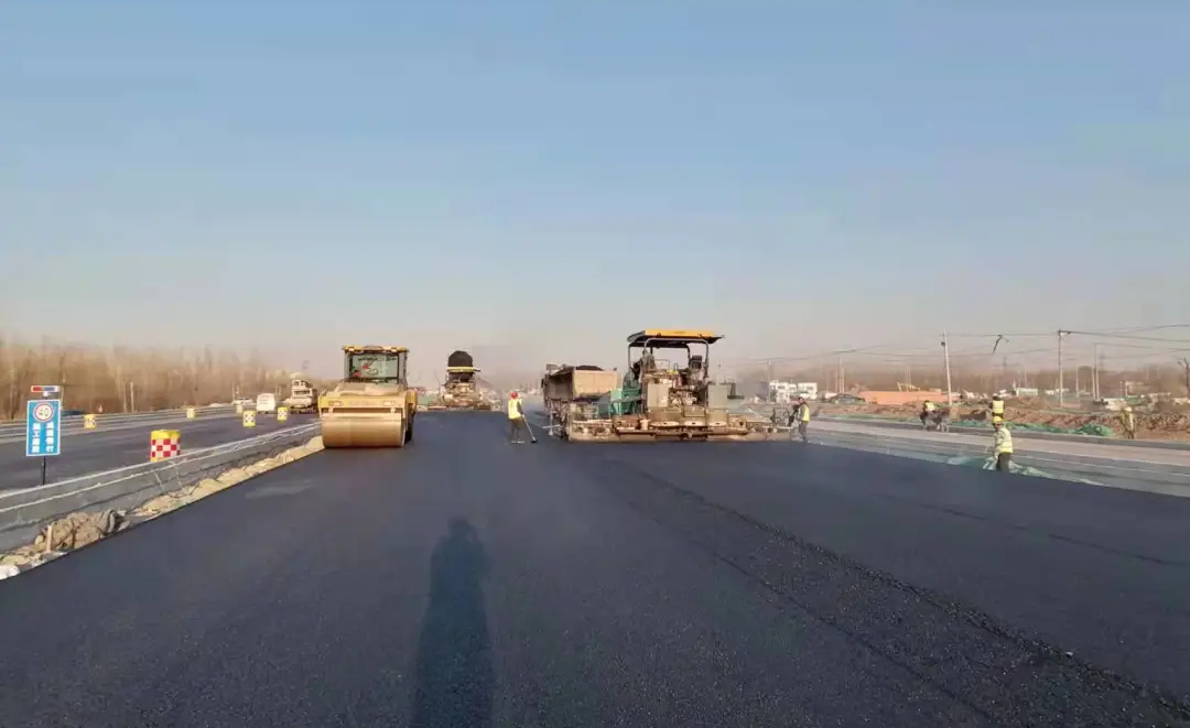 在濟樂高速崔寨南互通立交南側出口處,項目與山東省交通科學研究院合作,首次在濟南市政工程中試驗應用全厚式瀝青攤鋪技術。該技術不但能有效提高路面結構使用壽命,同時可以減少水泥穩定碎石的使用量,在優化瀝青路面級配的同時,節省工程造價,并將施工工期縮減為原來的60%左右。