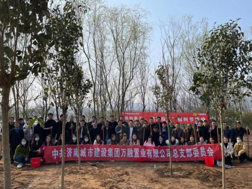萬融置業(yè)有限公司工會組織了主題為“擁抱春天,播種綠色”植樹活動。召大家強化植樹護(hù)林意識,切實履行公民植樹義務(wù),為祖國的綠化事業(yè)盡一份力量。濟(jì)南城市建設(shè)集團(tuán)萬融置業(yè)有限公司副總經(jīng)理、工會主席王鵬、董事會辦公室王金新主任,森泰園林總經(jīng)理李建峰參加了此次活動。