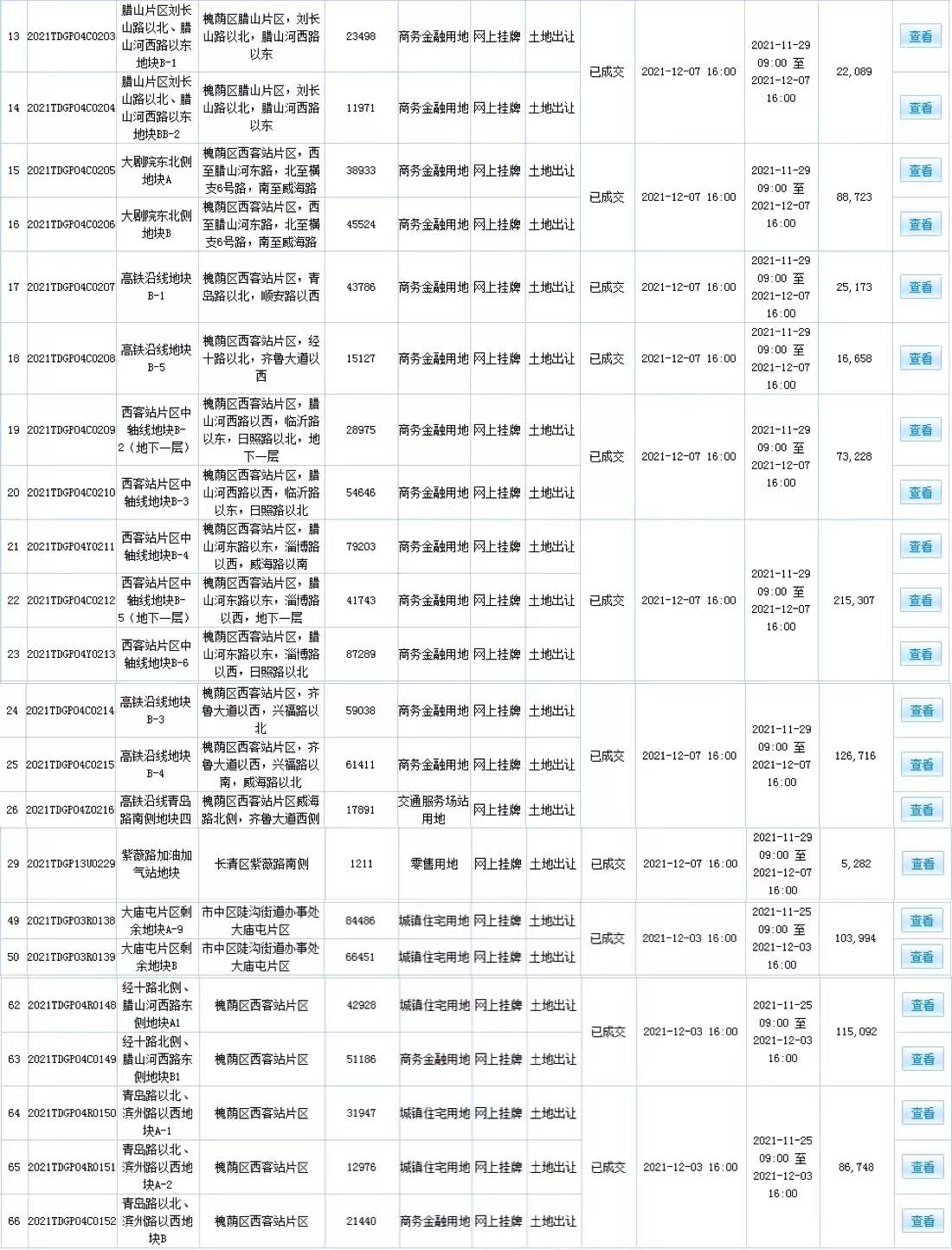 2021年12月9日,濟(jì)南市2021年第三批集中供地收官,規(guī)劃開(kāi)發(fā)一部本次掛牌共計(jì)1382.49畝土地最終全部出讓成功,出讓金額達(dá)人民幣87.9億元。