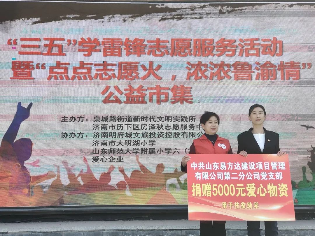 為進一步學習和弘揚雷鋒精神,大力發揚“奉獻、友愛、互助、進步”的志愿精神,積極響應拓展東西部協作工作領域,促進東西部協作,共建魯渝情。3月5日,易方達公司所屬黨支部作為愛心企業代表,參與了濟南市歷下區房澤秋志愿服務中心主辦的“點點志愿火,濃濃魯渝情”公益市集活動。