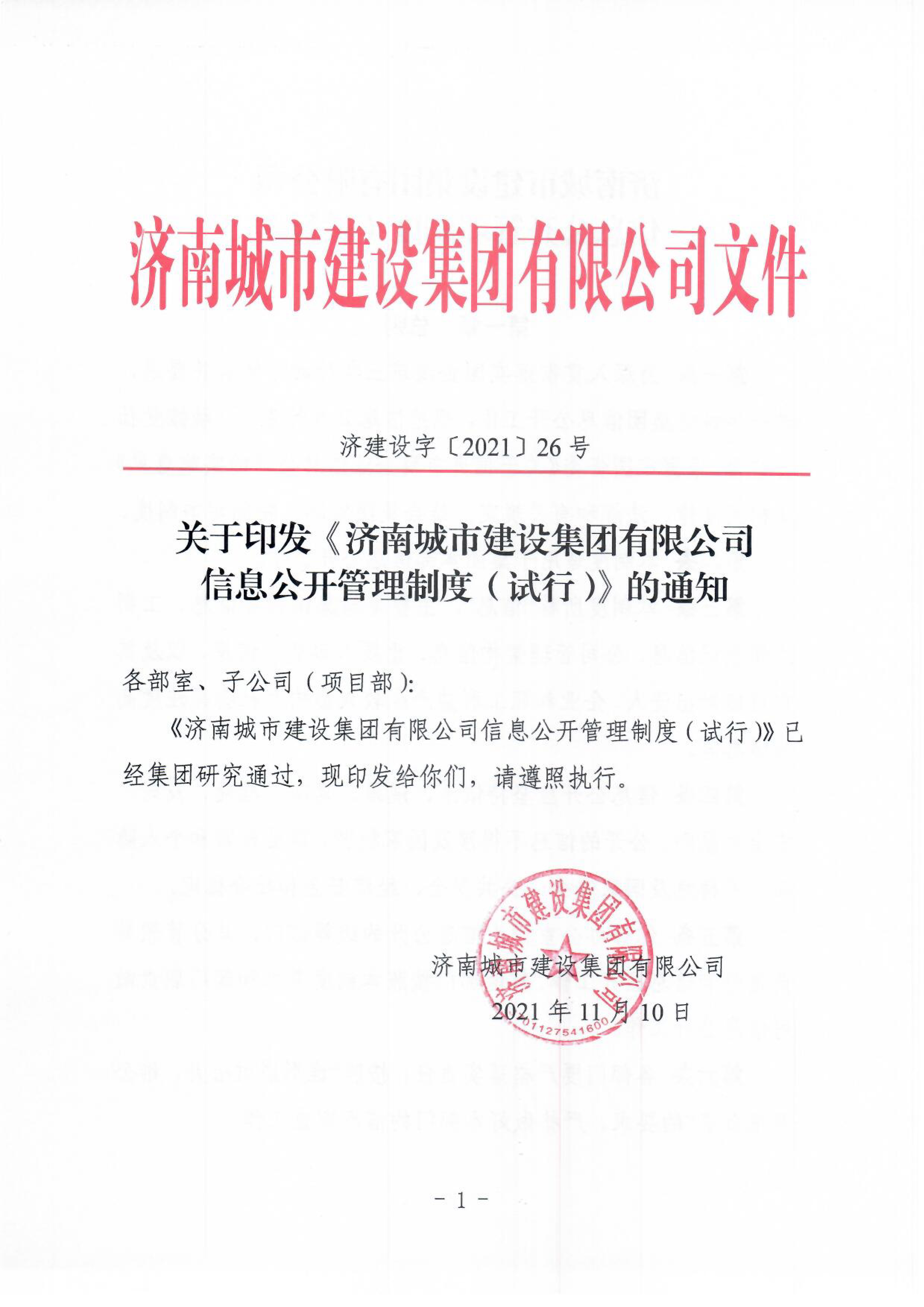 關于印發《濟南城市建設集團有限公司信息公開管理制度(試行)》的通知