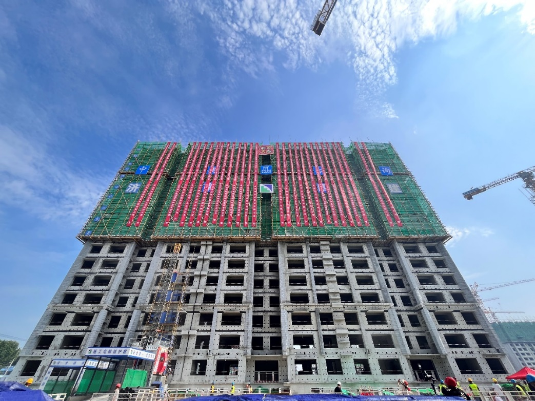 7月15日,由濟南城市建設集團受委托建設的濟南新舊動能轉換起步區(qū)孫耿街道七村整合安置區(qū)(二期)工程2#樓封頂,是二期項目首棟封頂單體工程。日前,孫耿街道七村整合安置區(qū)(三期)工程已完成首棟住宅封頂,目前,二期、三期工程正搶抓黃金施工期,全力推進工程建設。