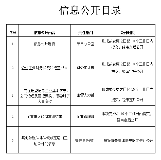 第三條 本制度所稱“信息”,主要是指公司財務信息、工商 注冊登記信息、公司管理架構信息、重要人事變動信息、以及其它可能對出資人、企業和職工利益產生較大影響及社會關注度高的信息等。