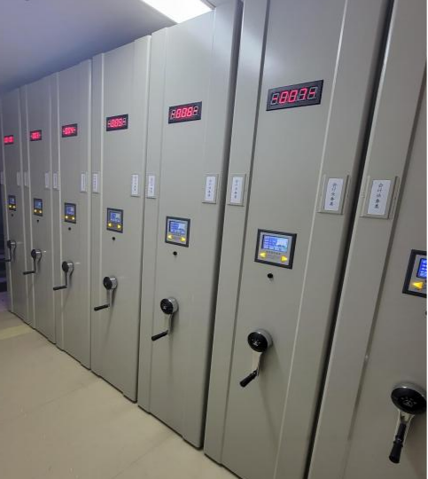 截至目前,公司檔案室現有庫房面積100余平米,配備檔案庫房一體化智能管理系統,裝有防盜門、窗和防光窗簾,配置了智能密集架17列,滿足后續10年以上各類檔案保管需要;配備防磁柜1臺,恒溫恒濕一體機1臺和滅火器等??蛇_到“九防”(防火、防盜、防光、防塵、防潮、防蟲、防高溫、防鼠、防有害氣體)的要求。檔案室外設專用的15平方米閱檔室,配有電腦、掃描儀、打印機、監控視頻系統,以及閱檔桌椅和其它有關檔案用品,在做好檔案的安全保管和有效利用提供基本的物資條件同時,做到檔案庫房與辦公室、閱覽室三分開原則,進一步提升檔案安全保障。