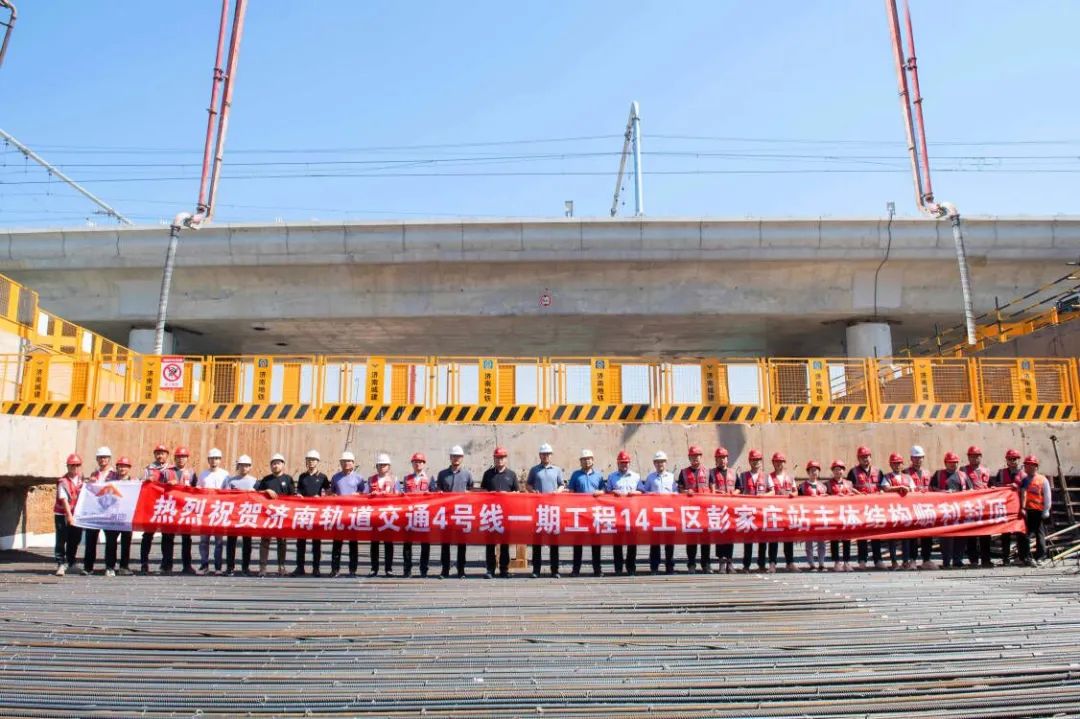 5月21日,隨著最后一倉(cāng)頂板完成混凝土澆筑,由建設(shè)集團(tuán)所屬濟(jì)南城建集團(tuán)公司承建的濟(jì)南軌道交通4號(hào)線(xiàn)一期工程14工區(qū)彭家莊站車(chē)站主體結(jié)構(gòu)封頂,為4號(hào)線(xiàn)同期展開(kāi)施工的所有車(chē)站中實(shí)現(xiàn)封頂?shù)氖鬃?chē)站。