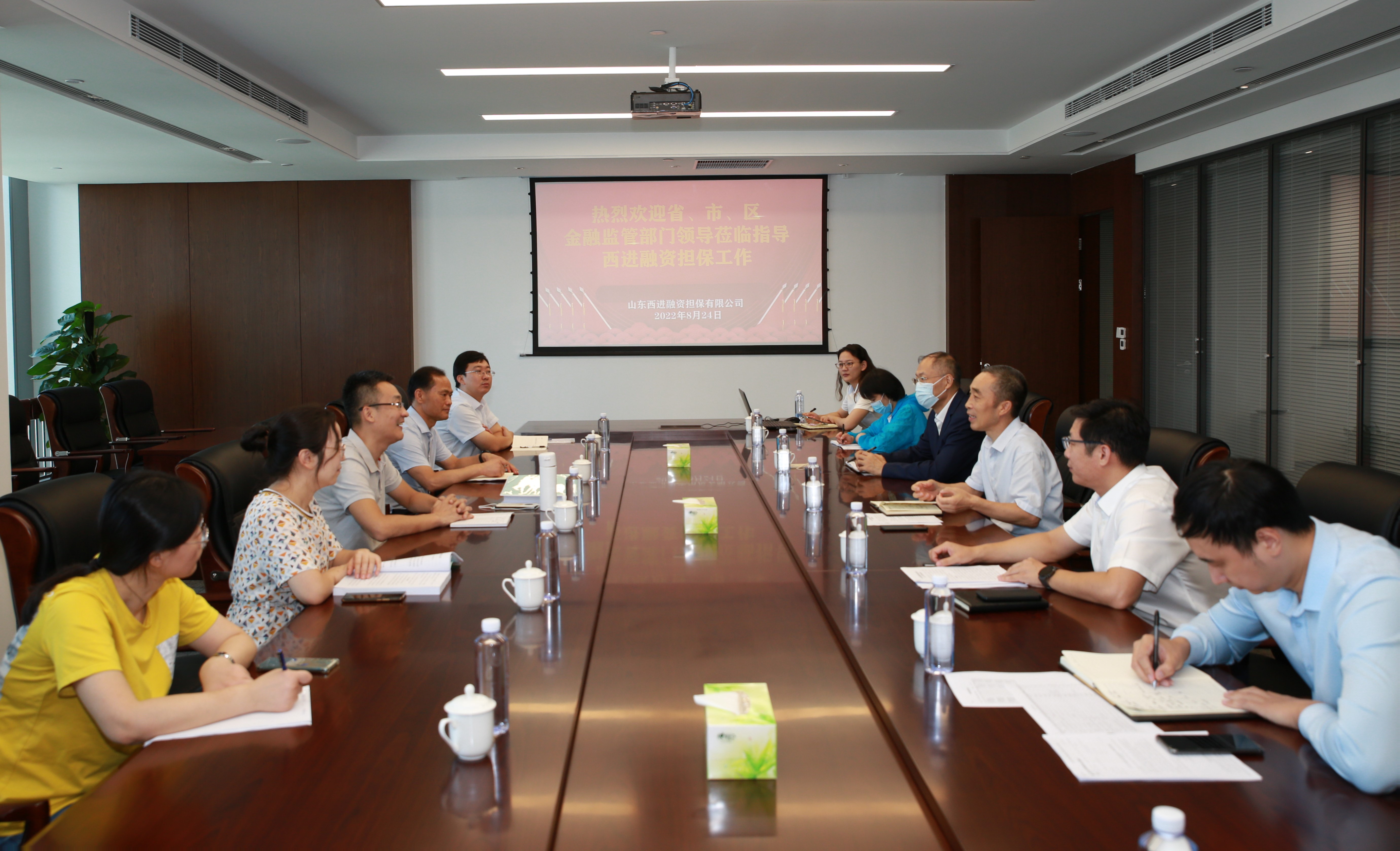 8月24日上午,山東省地方金融監(jiān)管局監(jiān)管二處岳曉光處長一行來到山東西進(jìn)融資擔(dān)保有限公司開展專項檢查,并召開工作會議。市、區(qū)金融監(jiān)管部門相關(guān)領(lǐng)導(dǎo)陪同參加,集團(tuán)黨委委員、總會計師范天云,西進(jìn)擔(dān)保公司相關(guān)人員參加了會議。