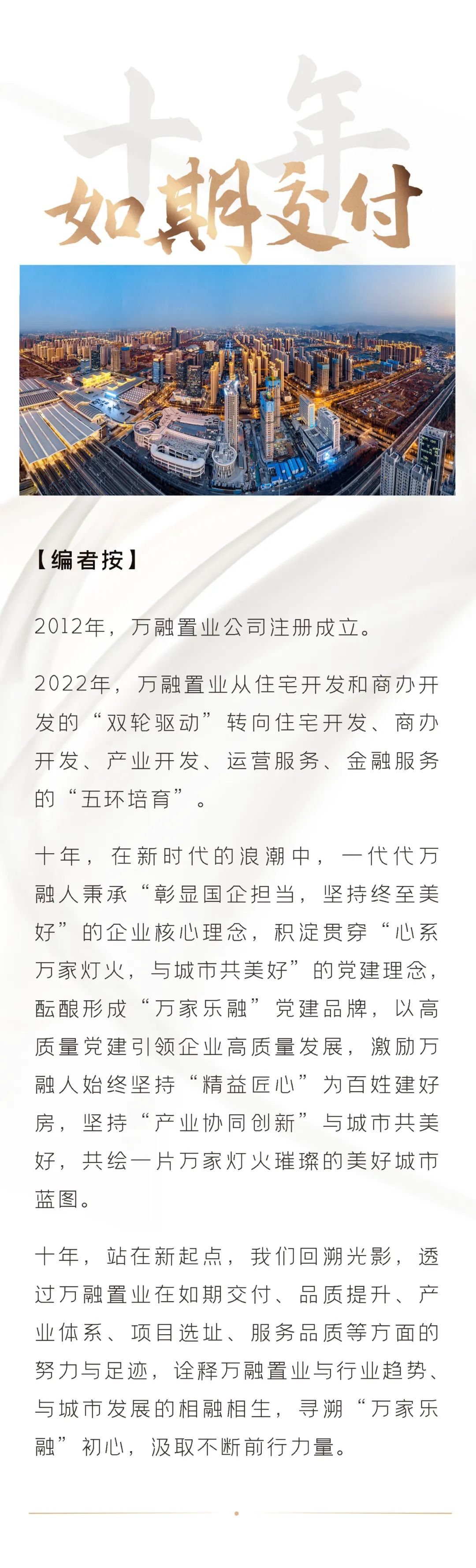 堅(jiān)持人文關(guān)懷,追求營造高品質(zhì)生活環(huán)境,讓城市品質(zhì)融入萬家燈火,實(shí)現(xiàn)如期交付。在卓越如期交付的背后,是萬融置業(yè)品牌背書的實(shí)力護(hù)航和匠心堅(jiān)持。