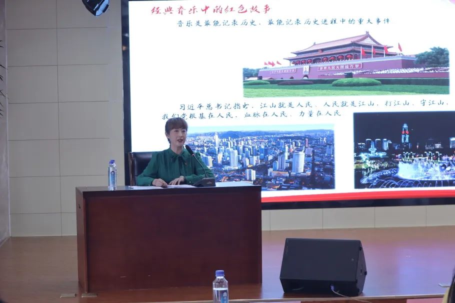 同時,本次學習還特別邀請到濟南市青少年宮團隊帶來音樂黨課《經典音樂中的紅色故事》。課程用“理論授課+音樂作品展演”的形式,以時間軸串聯講解經典音樂著作。黨課分《送別》與震驚中外的五四運動、《國民革命歌》與轟轟烈烈的大革命、《松花江上》與全民族抗戰的開始、《軍民大生產》與根據地的艱苦斗爭、《你是燈塔》與新中國的成立、《唱支山歌給黨聽》與社會主義建設的蓬勃開展、《春天的故事》與改革開放等七個部分,一首首耳熟能詳的音樂作品以獨唱、合唱、二胡獨奏、大提琴演奏、舞蹈等藝術形式重新演繹,歷史畫卷伴隨音樂徐徐展開,在浸潤式教育中傳承紅色基因,引導學員感受藝術魅力、匯聚精神力量、激發前行動力。
