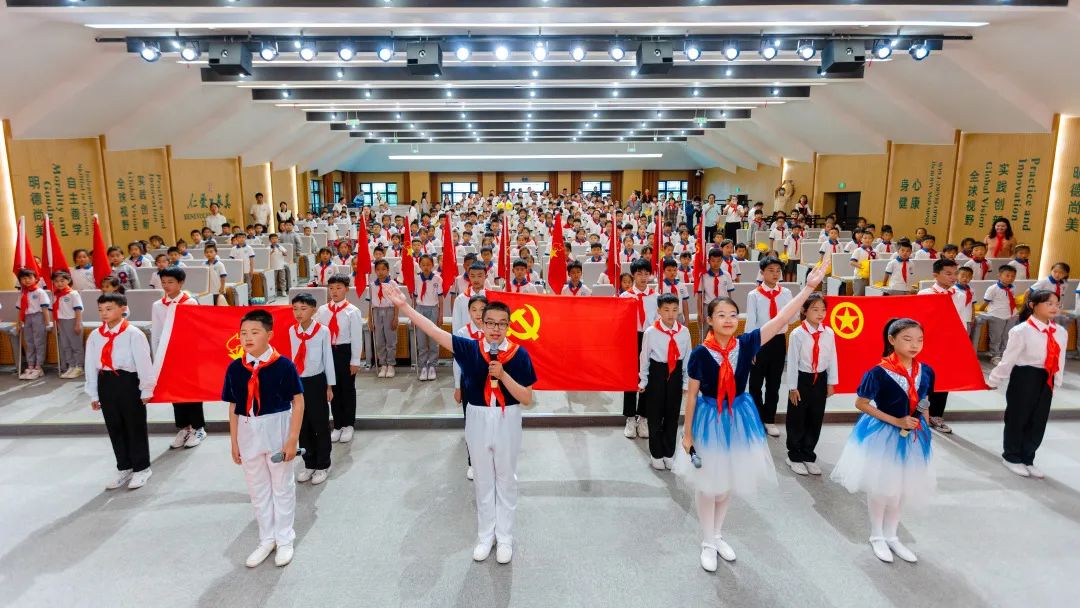 活動現場,與會嘉賓們為新入隊的少先隊員們佩戴了紅領巾,為新建中隊授中隊旗,見證了黨、團、隊三旗傳遞,徐冬梅為孩子們送上了“六一”寄語,建設集團為孩子們贈送了入隊成長禮物。