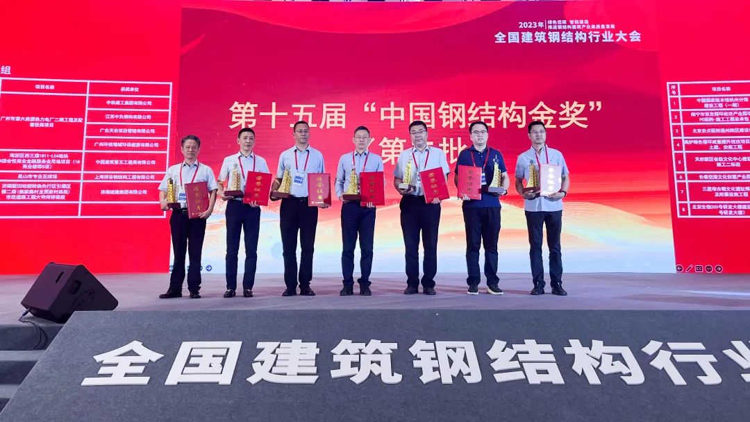 6月4日,全國(guó)建筑鋼結(jié)構(gòu)行業(yè)大會(huì)在上海舉行,會(huì)議公布第十五屆“中國(guó)鋼結(jié)構(gòu)金獎(jiǎng)”(第二批)獲獎(jiǎng)項(xiàng)目名單,由濟(jì)南城市建設(shè)集團(tuán)投資建設(shè)的濟(jì)南黃河鳳凰大橋工程,受委托建設(shè)的濟(jì)南新舊動(dòng)能起步區(qū)橫一路大寺河橋工程及橫二路大寺河橋工程榮獲“中國(guó)鋼結(jié)構(gòu)金獎(jiǎng)”,建設(shè)集團(tuán)黨委副書記、總經(jīng)理許為民代表集團(tuán)領(lǐng)獎(jiǎng)。