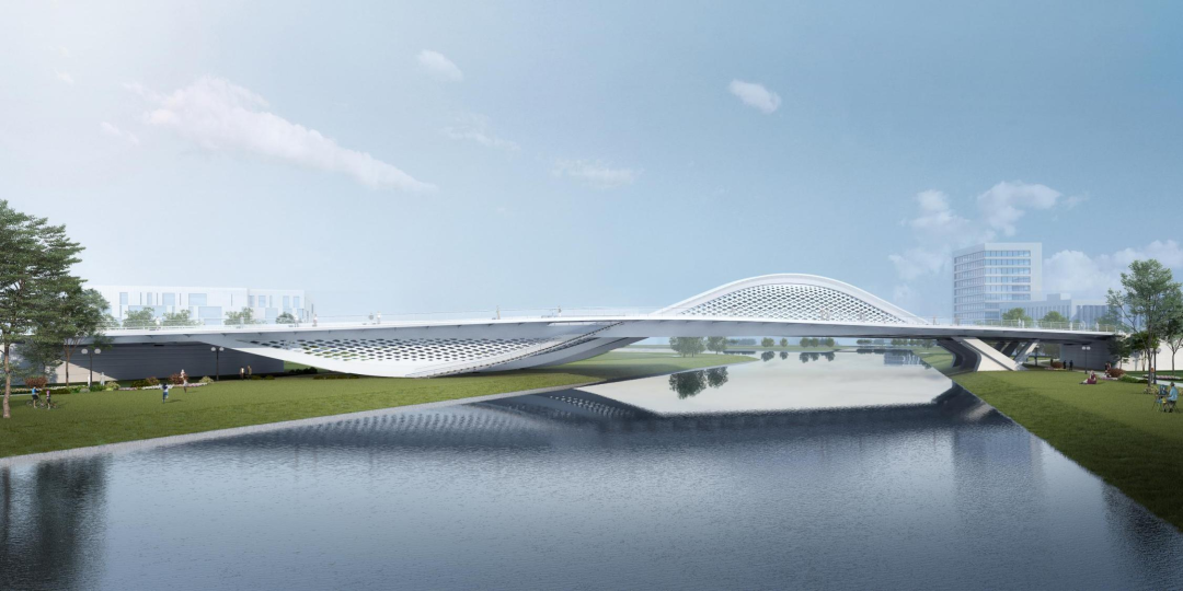 橫二路大寺河橋由世界著名橋梁設(shè)計(jì)師Marc MIMRAM先生主設(shè)計(jì),由建設(shè)集團(tuán)所屬濟(jì)南城建集團(tuán)公司承建。橋梁全長(zhǎng)150.16m,采用鋼結(jié)構(gòu)梁拱組合體系一跨跨越大寺河,橋面總寬37m,道路寬度42m,雙向六車道,橋梁鋼結(jié)構(gòu)總鋼材用量約4197噸。